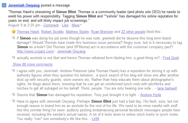 Thomas Hawk’s skewering of Simon Blint: Thomas is a community leader (and photo site CEO) he needs to wield his power with responsbility