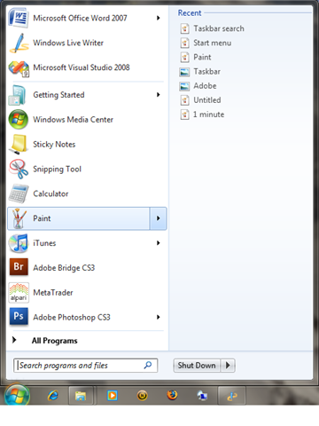 The search box now says “Search programs and files” instead of start search. Its more obvious about the function of the search box, and encourages users to use it more. This is one of my favourite features of the Vista-esque UI ( i.e since Vista)